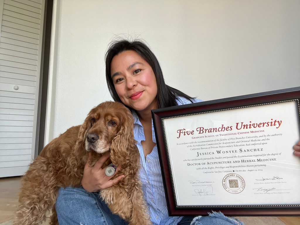 - Doctorate of Acupuncture and Herbal Medicine (DAcHM), Five Branches University Graduate School of Traditional Chinese Medicine, San Jose (MAcHM/DAcHM Dual Degree)
